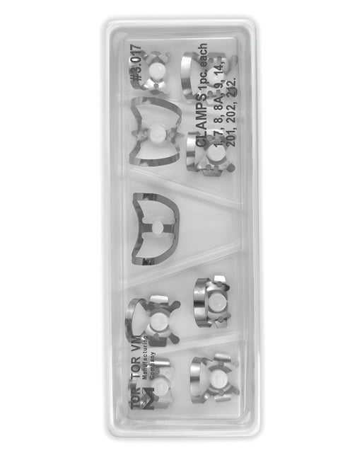 View full detailsIncludes one of each clamps: clamp В4 clamp 0 clamp 2 clamp 2А clamp 7 clamp 8 clamp 9 clamp 12А clamp 13А clamp W56 Rubber dam forc...