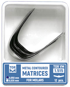 Matrices metálicas contorneadas para molares, forma 5 (un borde central), alargadas, 12 unidades