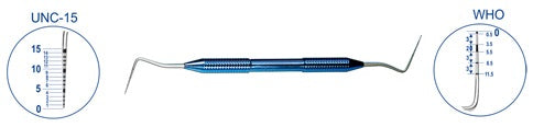 Medición de la profundidad de las bolsas gingivales : mida la profundidad de las bolsas gingivales alrededor de los dientes.