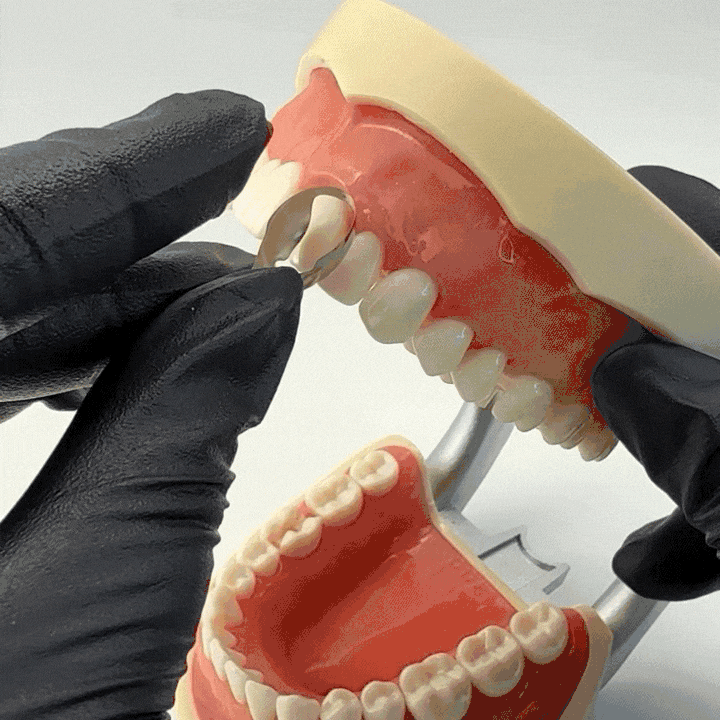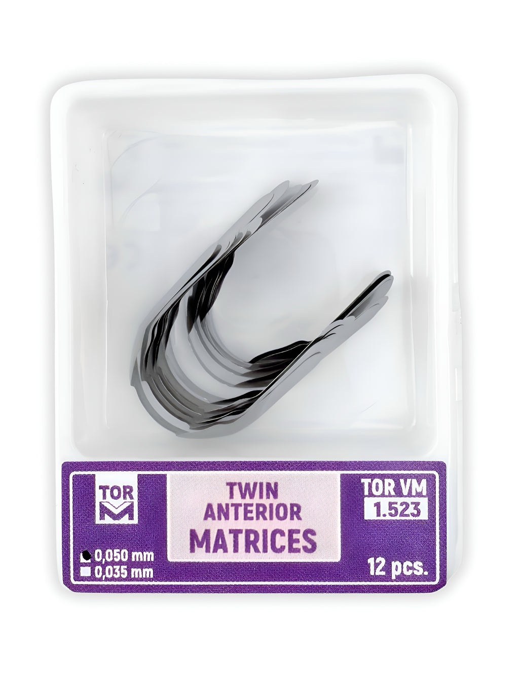 Las matrices anteriores gemelasse pueden utilizar en restauraciones de superficies proximales de la región anterior. Se recomienda instalar la matriz anterior verticalmente.