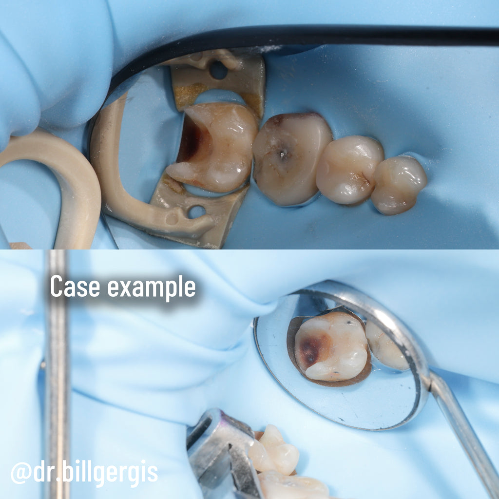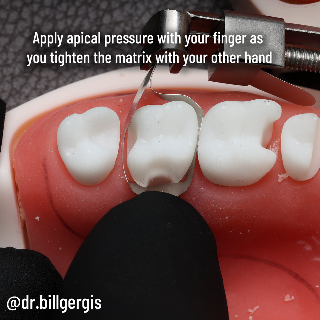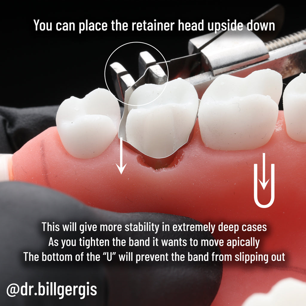 - La matrice Gergis de taille n° 1 est plutôt recommandée pour l'élévation de marge profonde dans les cas qui ne sont pas unilatéraux (asymétriques), tels que les dents décoronnées.