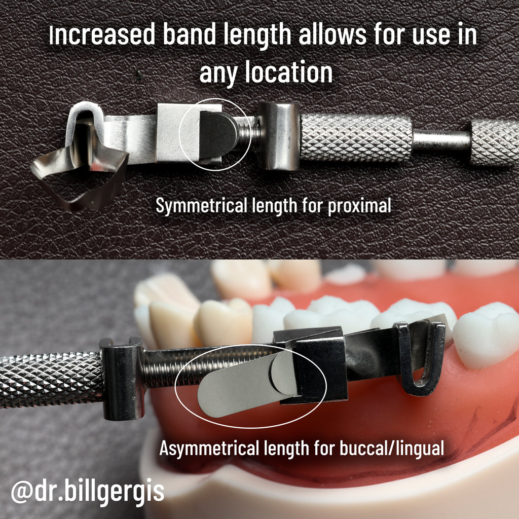 - Permet une utilisation non seulement dans les zones proximales, mais aussi dans les zones buccales et linguales, et dans toutes les zones intermédiaires, au lieu de nécessiter deux modèles de matrices distincts.