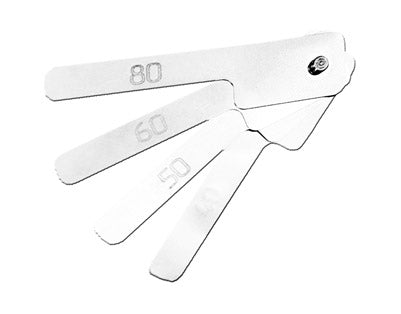 Les jauges interproximales servent à mesurer la largeur de l'espace interdentaire aux points de contact entre les dents. Cette mesure permet d'optimiser le choix de l'épaisseur de la digue dentaire et facilite également un contrôle précis lors du meulage proximal des dents.