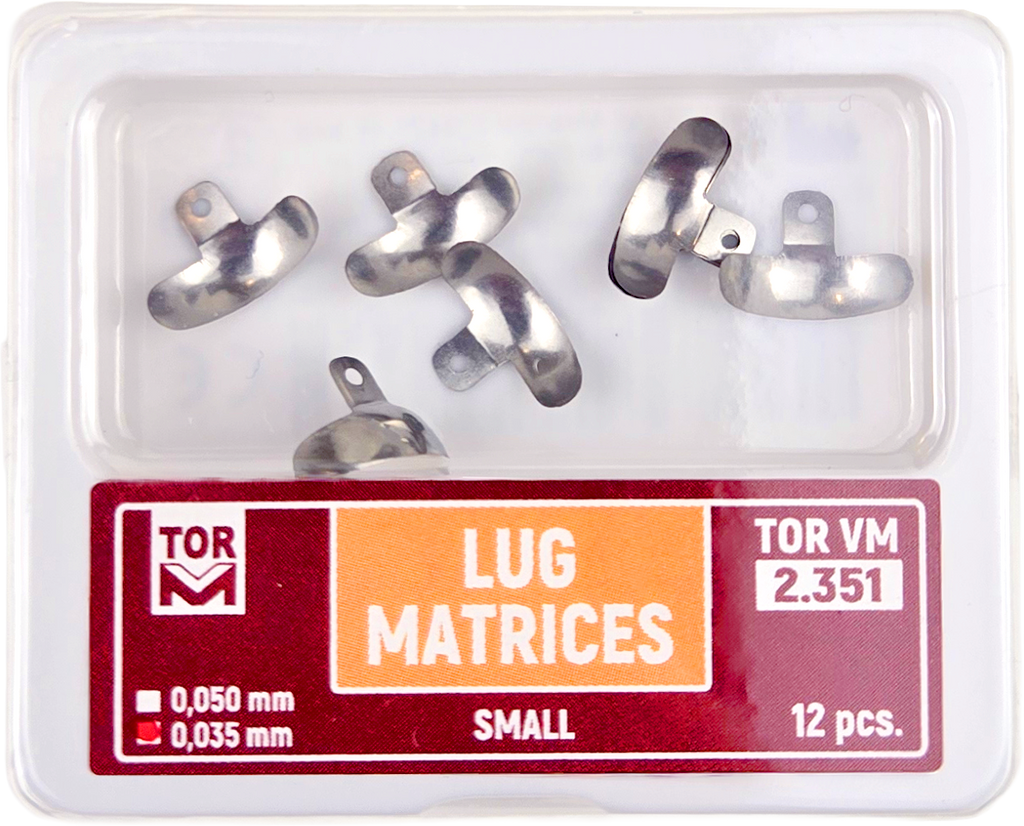 Les matrices à ergots offrent une meilleure couverture des zones buccales et linguales que les matrices sectionnelles Tor VM classiques. De plus, elles comportent des orifices pratiques à trois endroits sur la bande, facilitant la mise en place et le retrait, notamment lorsqu'elles sont utilisées avec les matrices à ergots. Pince linéaire Tor VM .