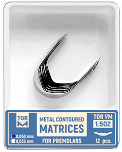 Matrices métalliques profilées pour prémolaires, forme 2 (bilatérales), lot de 12.