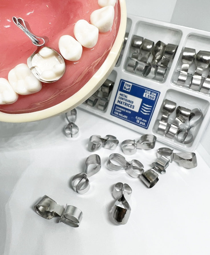 transparent rectangular matrix bands 0,050 mm thick, 10х37 mm - 100 pcs. cervical former - 1 pcs. stopper - 1 pcs.